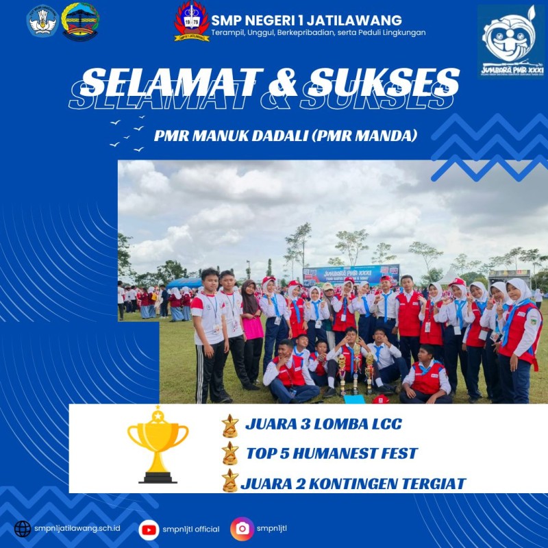 Pada tanggal 24 Oktober 2025, tim PMR Manuk Dadali SMP Negeri 1 Jatilawang mengikuti kegiatan Jumbara PMR XXXI Palang Merah Indonesia Kabupaten Banyumas Tahun 2025 dan berhasil meraih beberapa juara dan kami sangat bangga bisa menonjolkan kemampuan serta semangat kami dalam mengikuti lomba ini. Hasil yang kami peroleh tentunya tidak mudah kami dapatkan, butuh proses perjuangan dalam mencapainya.